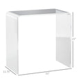 Elevate your living space with the HOMCOM acrylic side table featuring a stunning waterfall design. This sleek and modern coffee table seamlessly blends into any decor, adding a touch of sophistication. Its transparent acrylic construction creates the illusion of spaciousness by giving you a larger view of the room. Practical and stylish, it's an excellent accent piece for your home. Features: - Waterfall end table with a U-shape has an elegance that compliments any décor - Its clear color enhances the spaciousness of your room - Rounded corners and smooth edges make it a safer choice - 0.5" thickness acrylic is sturdy and quality - It can be used as a side table or a coffee table - Easy to clean with a damp cloth - No assembly required Specification: - Color: Clear - Material: Acrylic - Overall Dimensions: 21"L x 12"W x 21"H - Acrylic Thickness: 0.5" D - Overall Weight Capacity: 110 lbs. - Item Label: 839-843V00CR Package Includes: - 1 x Acrylic Table - 1 x Manual.